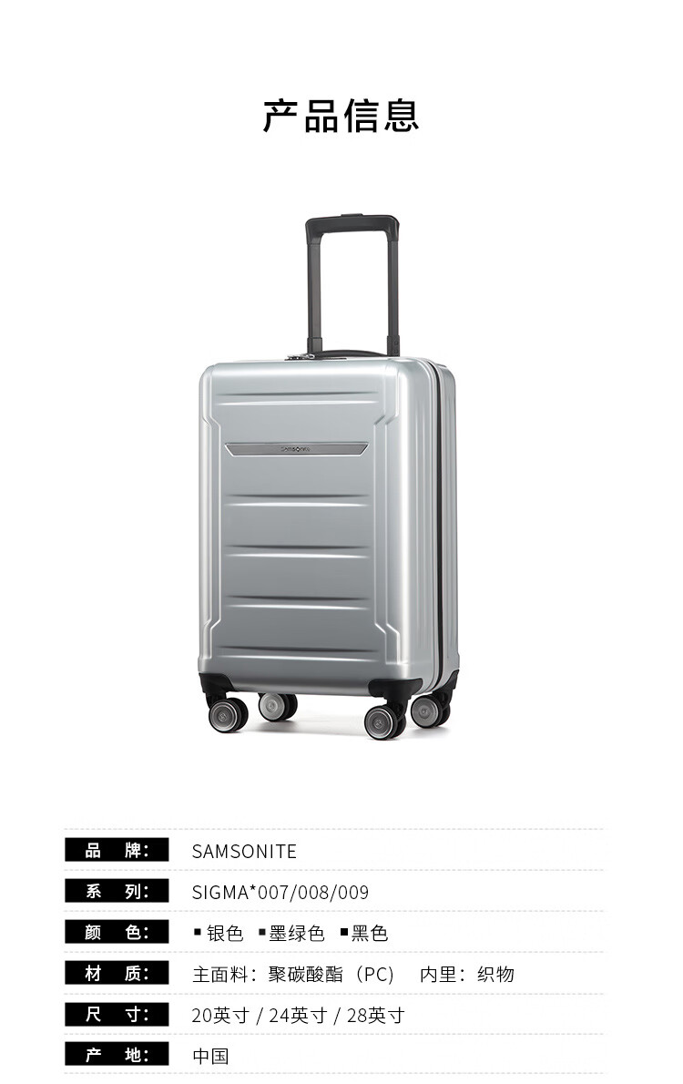 Samsonite 新秀丽 SIGMA系列 PC拉杆箱 06Q 墨绿色 24寸