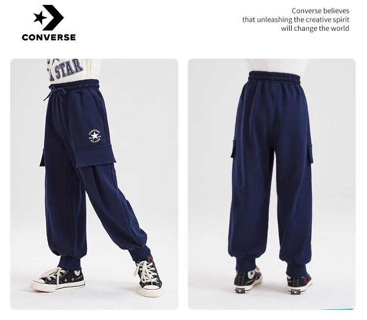 Converse匡威童装男童工装针织长裤女童休闲防蚊裤子 藏青蓝 150/63