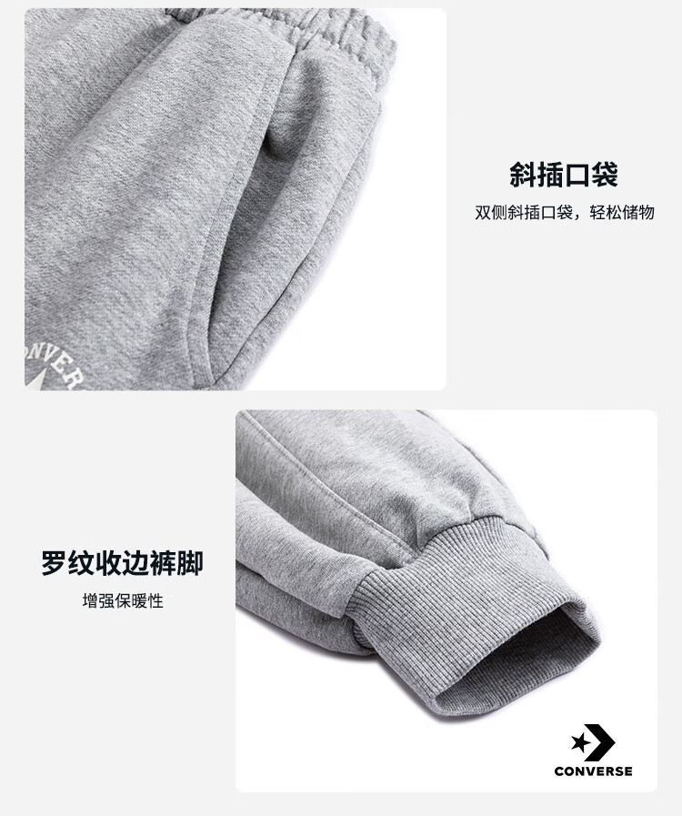 Converse匡威童装男童长裤2025冬季摇粒绒运动休闲裤直筒裤宽松保暖裤 正黑色 150 /63 【身高140-152cm】