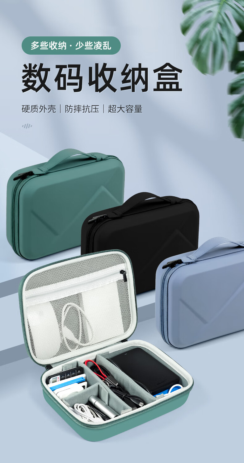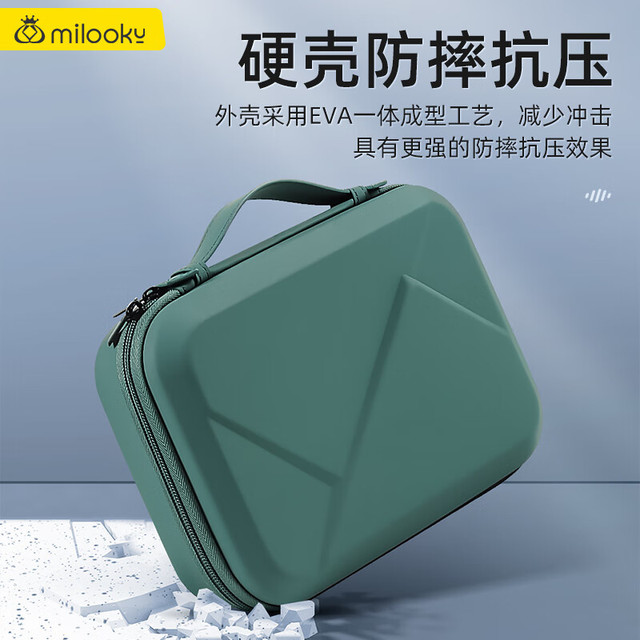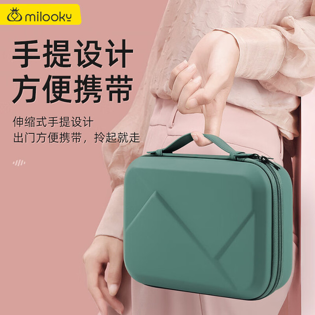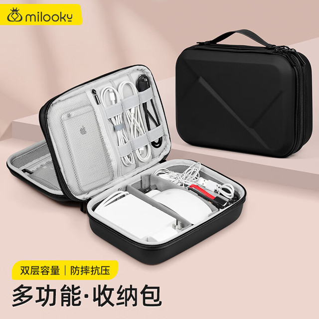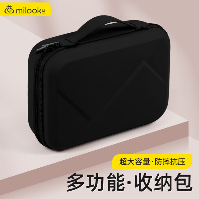 Milooky数码配件耳机充电器化妆品收纳包防震抗压旅行收纳盒子双层大容量 气质黑