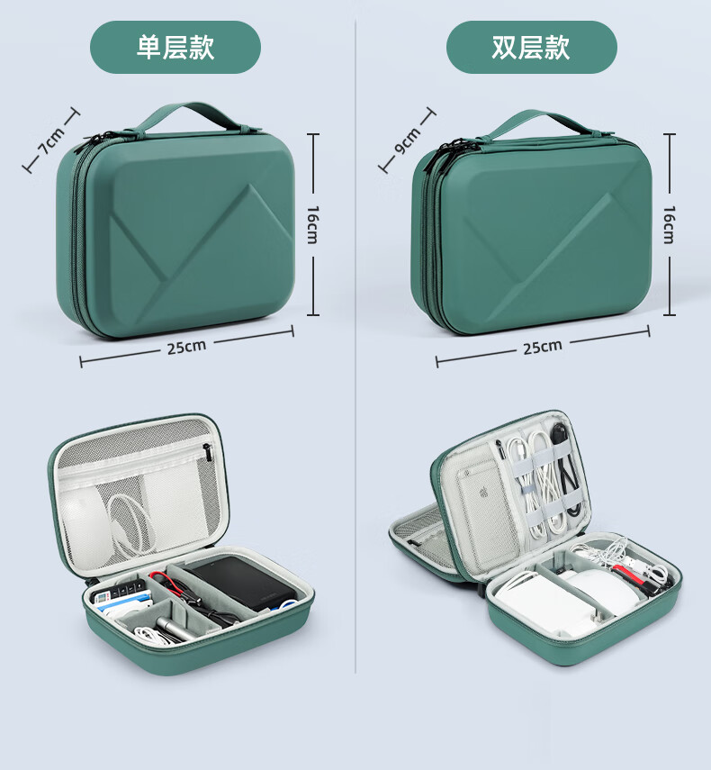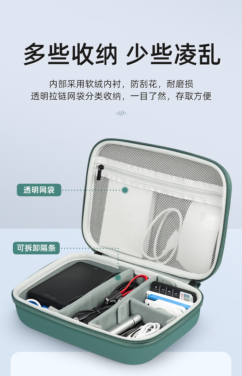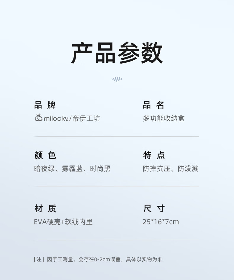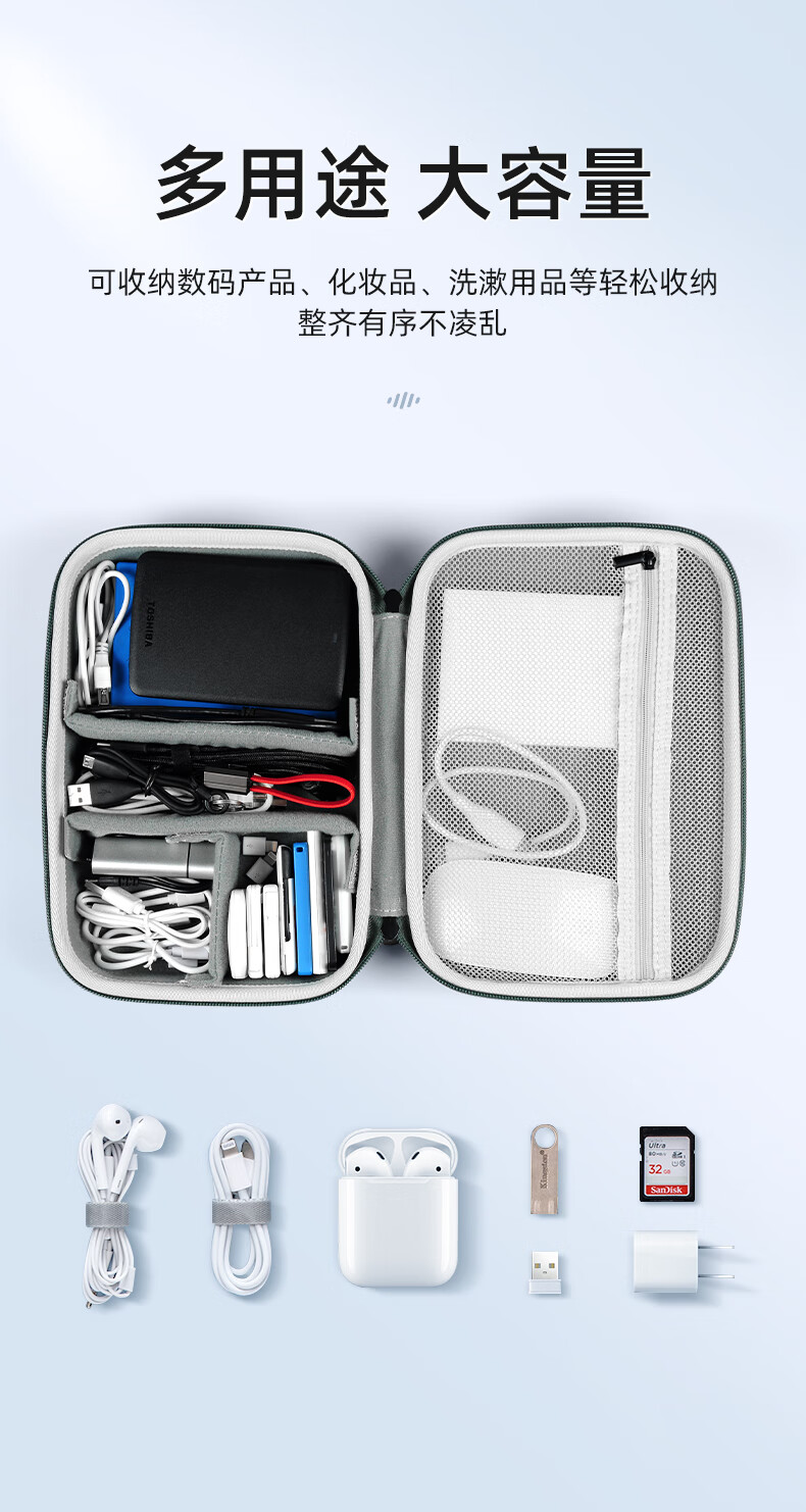 Milooky数码配件耳机充电器化妆品收纳包防震抗压旅行收纳盒子双层大容量 气质黑