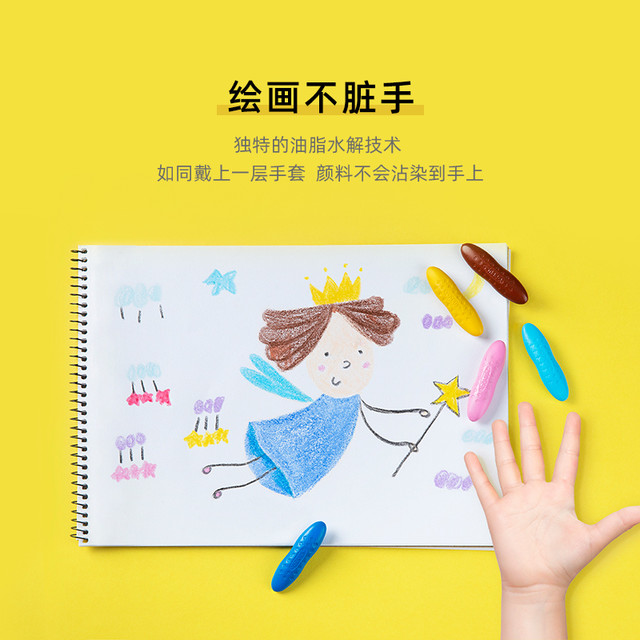 英国YPLUS花生蜡笔水溶性画笔12/24色绘画套装油画棒儿童幼儿园宝宝腊笔不脏手可水洗彩笔画笔涂色笔文具