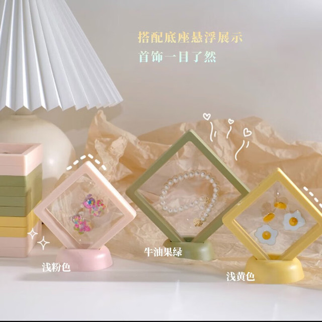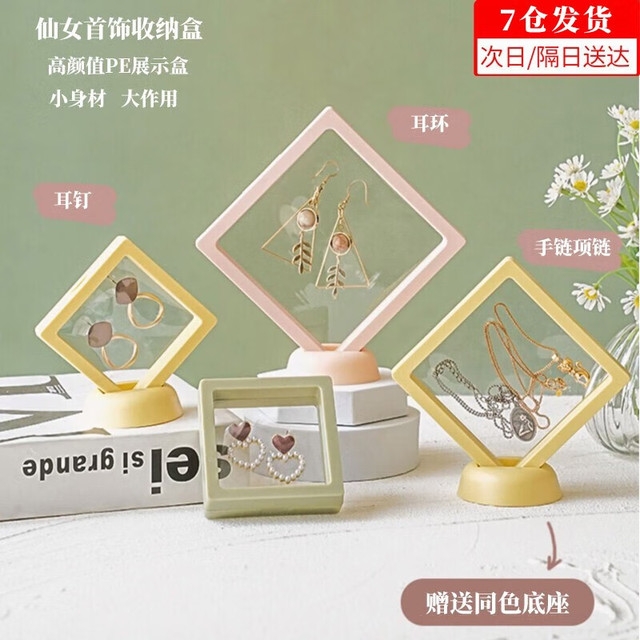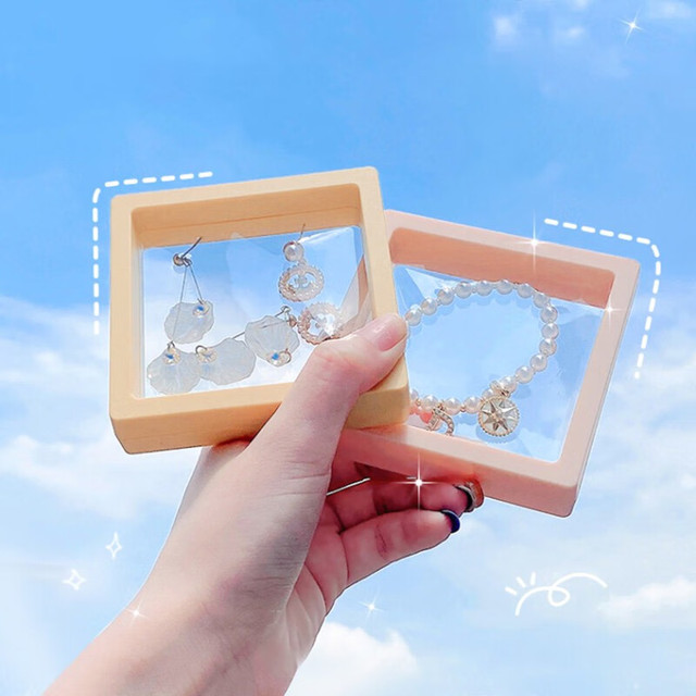 东之天地PE膜首饰盒悬浮盒透明耳环项链收纳盒昆虫植物标本徽章饰品展示盒 3件套+底座