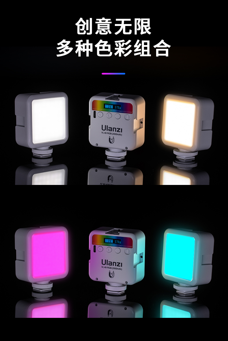 ulanzi优篮子 VL49RGB(白)磁吸全彩补光灯便携LED口袋双色温