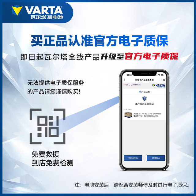 瓦尔塔(VARTA)京东养车汽车电瓶蓄电池启停系列AGM22 H7 80Ah上门安装