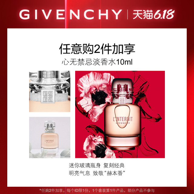 GIVENCHY 纪梵希 彩妆组合 (心无禁忌浓香水EDP10ml+高定红丝绒#N37朱砂砖红1.5g+心运限定版高定红丝绒#N37朱砂砖红3.4g+四宫格散粉#1号12g)