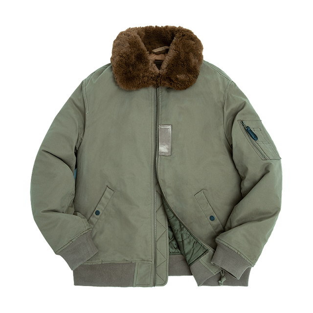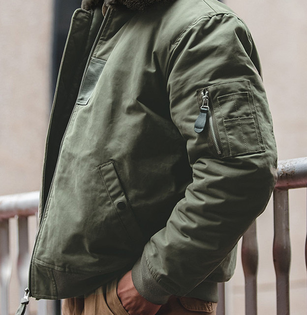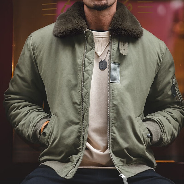 马登 MADEN工装 美式复古B15飞行员夹克加厚翻毛领外套 绿色 M