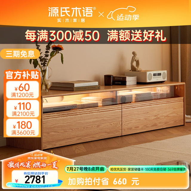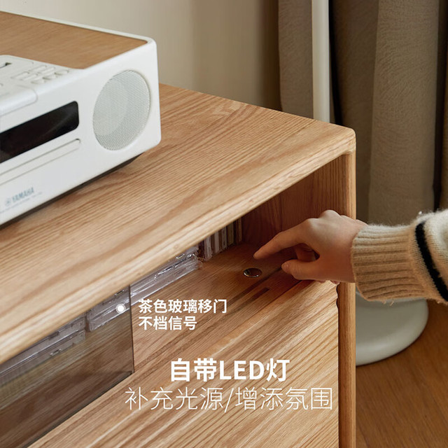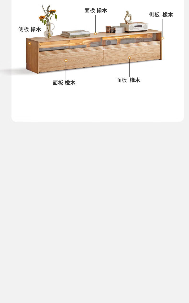 源氏木语实木电视柜简约客厅小户型地柜家用落地收纳柜(橡木)2.2米电视柜 橡木2.2米电视柜