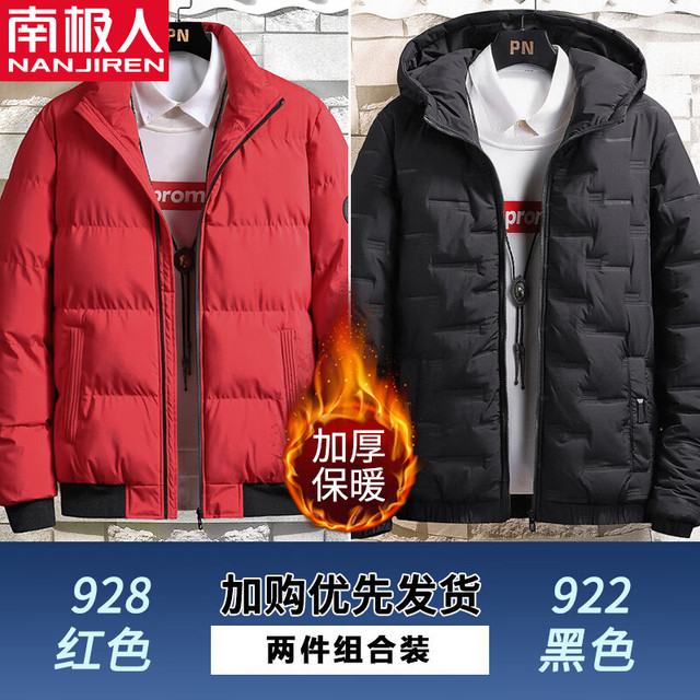 南极人立领棉衣男士装秋冬季款加绒加厚保暖宽松外套棉服袄子防寒衣服 1XM21/9 1XM21/947红色+1XM21/922黑色 M