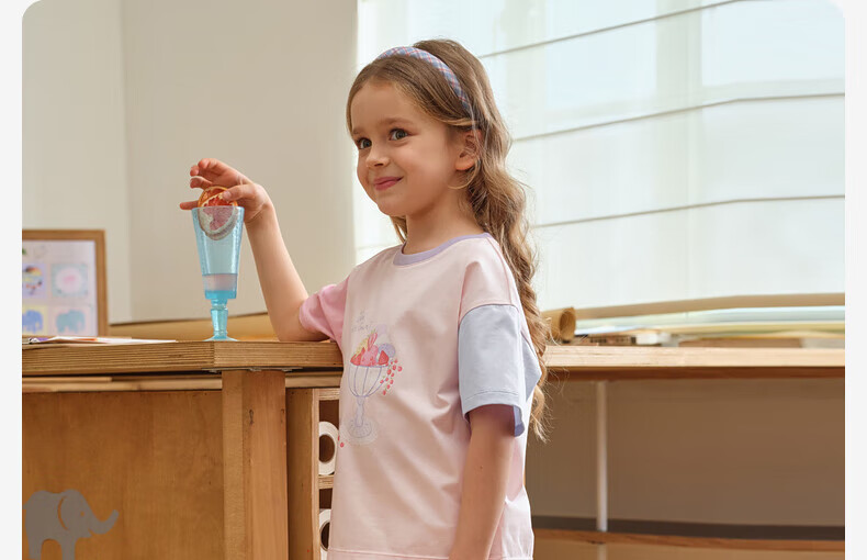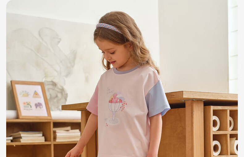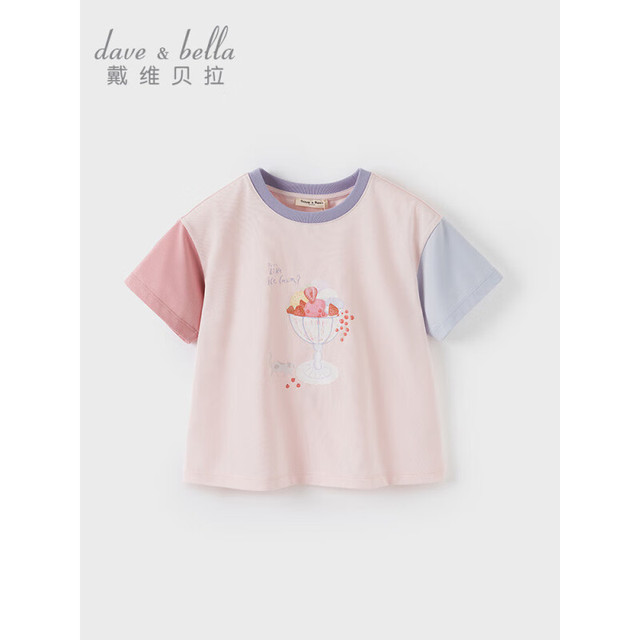 戴维贝拉(DAVE&BELLA)儿童短袖t恤抗菌女童上衣中大童打底衫2024夏季童装女孩衣服 珊瑚粉 160cm(身高150-160cm)