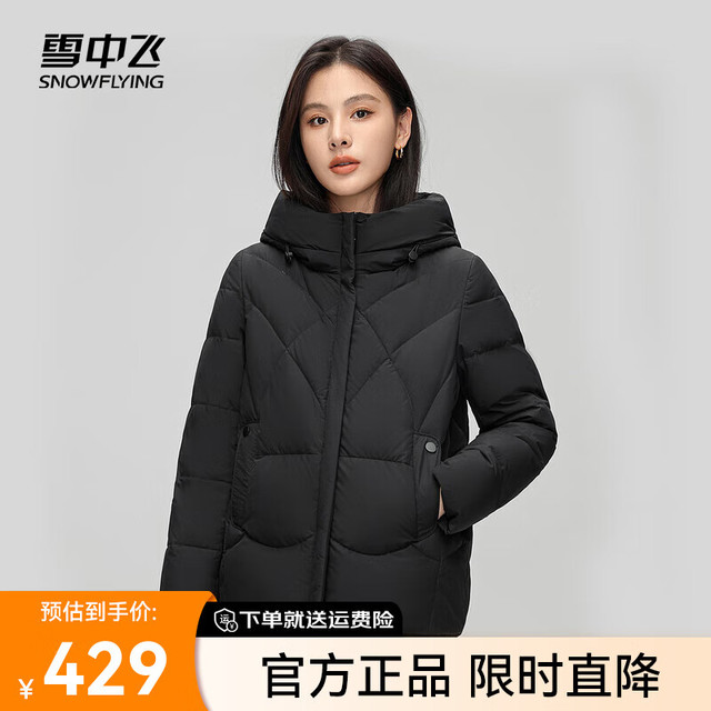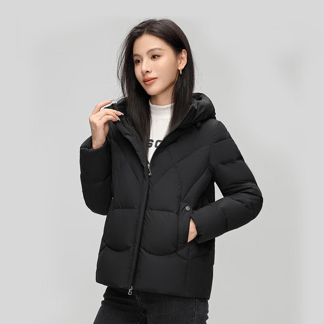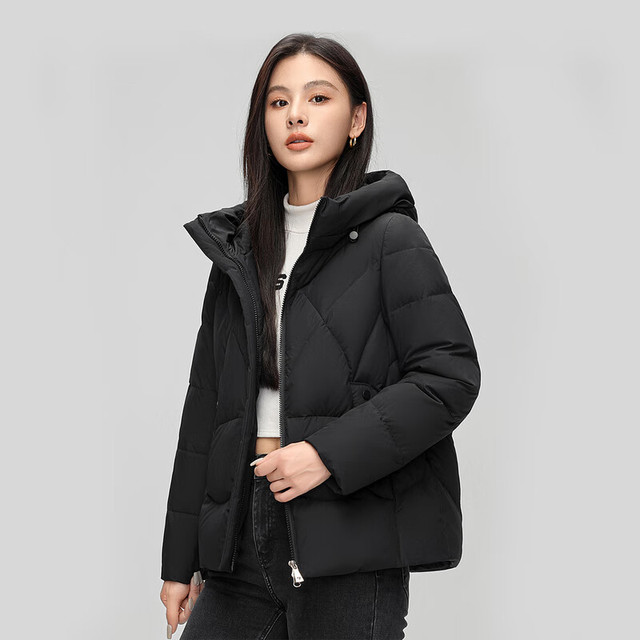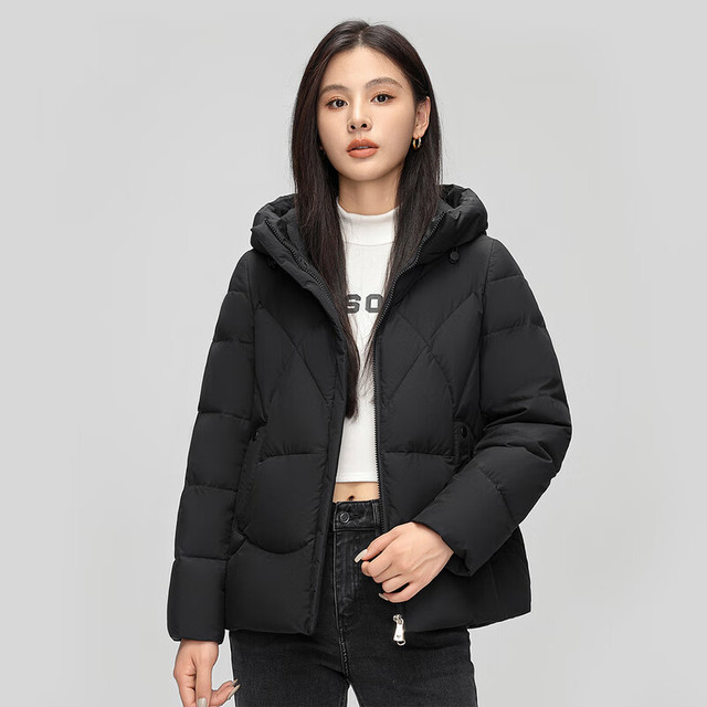 雪中飞 SNOWFLYING2024新款短款连帽羽绒服加厚百搭时尚亲肤保暖女士大气优雅防寒