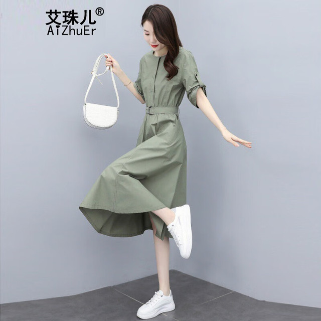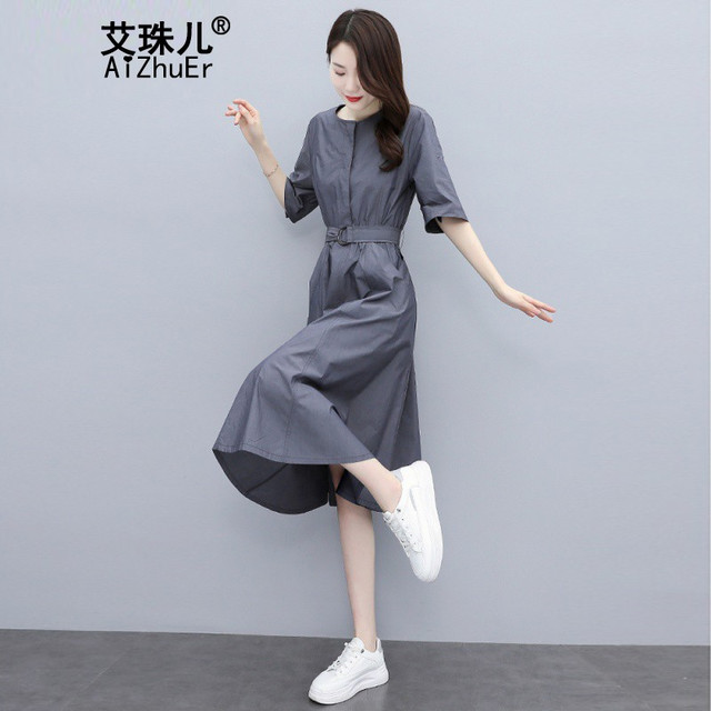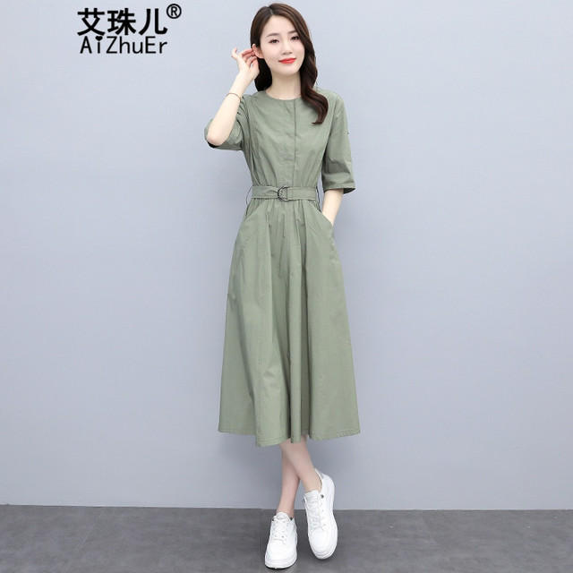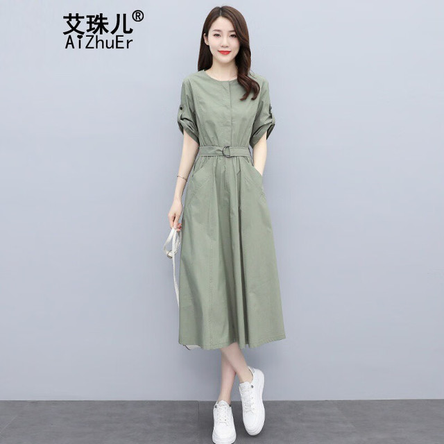 艾珠儿新款连衣裙夏季2024女装韩版短袖中长款收腰显瘦气质夏天裙子女
